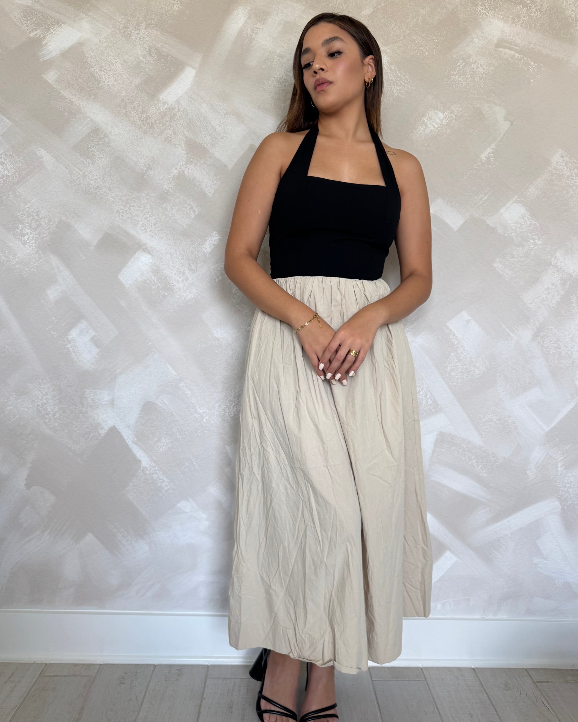 Ladies woven cotton halter color block maxi dress